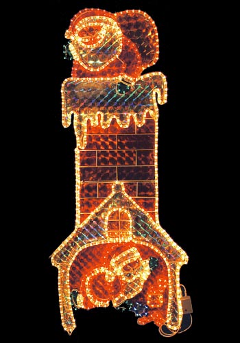 コンセントを入れるとチューブライトが光ると共に上下のサンタが点滅します。ICコントローラーを使えば点滅の種類をお選びいただけます。防滴仕様。